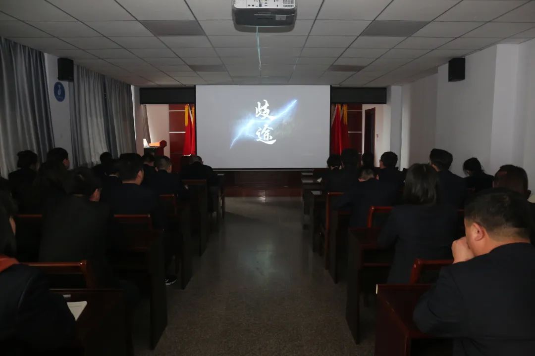 會(huì)上,全體黨員干部集中觀看了警示教育片《歧途》。