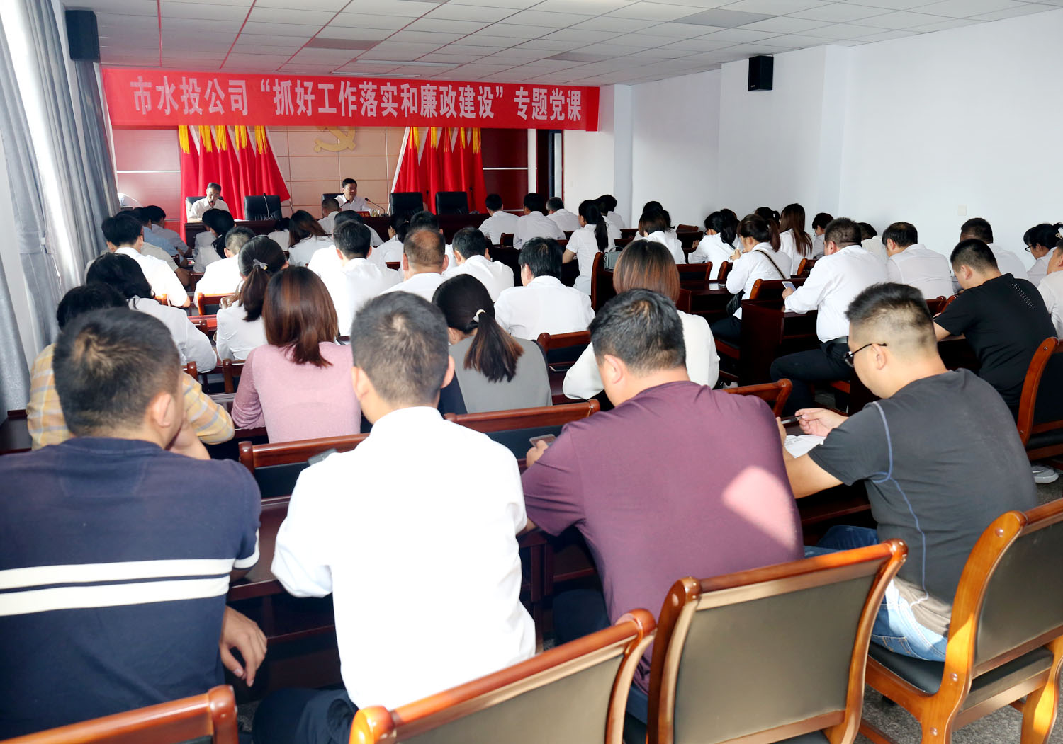 為深入推進“不忘初心、牢記使命”主題教育活動開展,按照市委統(tǒng)一部署安排,經公司黨委研究決定,于9月29日下午在公司六樓會議室,黨委書記崔作銘為公司全體黨員講了一堂題為“抓好工作落實和廉政建設”的專題黨課。公司各黨(總)支部全體黨員到場聽講。