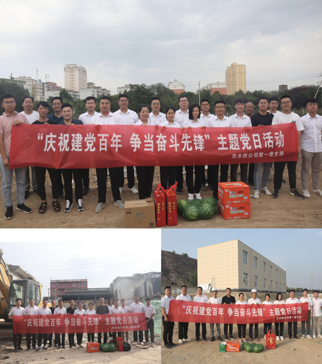 在建黨一百周年之際,為充分表達黨組織對一線黨員干部群眾頂酷暑、戰(zhàn)高溫,攻堅克難抓建設(shè)的工作干勁的鼓勵和肯定,對一線黨員干部群眾的生產(chǎn)生活提供一定的幫助,為他們送去組織的關(guān)心和關(guān)愛,在學習活動結(jié)束后,支部部分黨員、入黨積極分子共同來到干河綜合治理工程3標段項目工地、姚暹渠禹都段項目工地和鴨子池項目工地,詳細了解各段施工進度及存在的困難問題,現(xiàn)場溝通交流、積極出謀劃策,同時為各項目工地黨員干部群眾送上了西瓜、飲料、防蚊液、花露水等消暑品。