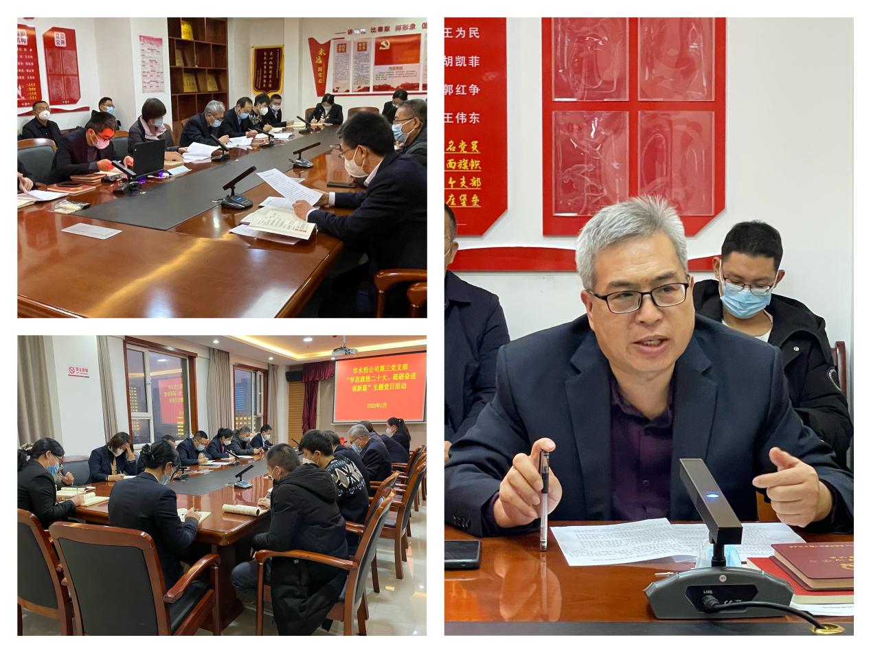 按照市委組織部《關(guān)于認(rèn)真開展2023年1月黨支部主題黨日活動的通知》要求,結(jié)合公司黨委安排部署,1月3日下午,支部組織黨員、各科室負(fù)責(zé)人和群眾代表開展了“學(xué)思踐悟二十大、砥礪奮進(jìn)謀新篇”主題黨日活動。