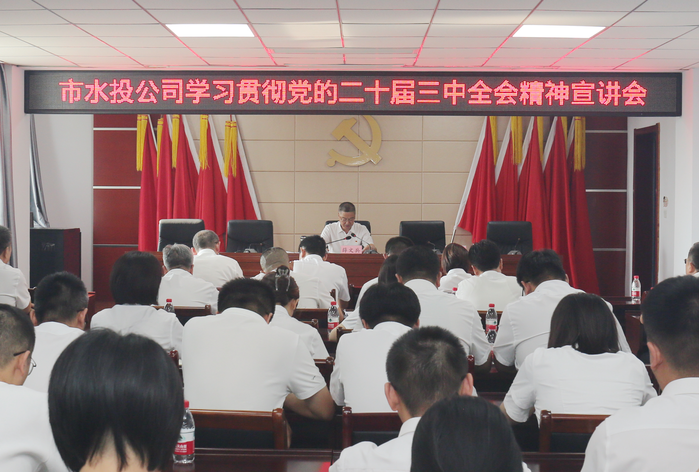 為深入學(xué)習(xí)貫徹黨的二十屆三中全會精神,引領(lǐng)廣大黨員干部吃透精神要義,領(lǐng)悟?qū)嵺`要求,9月5日上午,市水投公司召開學(xué)習(xí)貫徹黨的二十屆三中全會精神宣講會。黨委書記薛文兵作宣講,黨委委員范永勝主持。