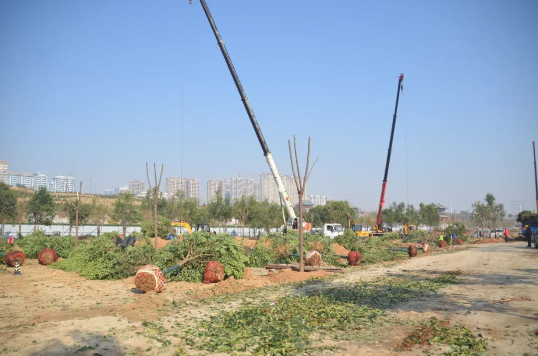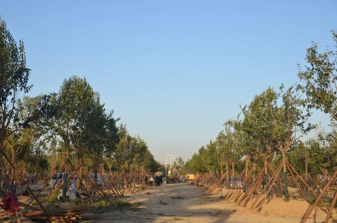 施工現(xiàn)場,大型機(jī)械集中作業(yè),挖掘機(jī)、裝載機(jī)、吊裝機(jī)和運輸車來回穿梭,九十余名工人辛勤勞作,相互配合,干勁十足,按設(shè)計規(guī)定放線挖坑、吊裝樹木、培土壓實,防護(hù)林建設(shè)有序進(jìn)行。栽植過程中,多次討論研究,結(jié)合鹽池生態(tài)環(huán)境,統(tǒng)籌考慮,因地制宜選擇當(dāng)?shù)卦灾矘浞N,目前已種植國槐、榆樹、大葉女貞、紅葉石楠、大葉黃楊、金森女貞、麥冬等各類喬灌木草種共計700余株,綠化種植面積2萬多平米,綠化建設(shè)將進(jìn)一步對鹽湖北側(cè)岸帶生態(tài)系統(tǒng)起到很好的防護(hù)作用。