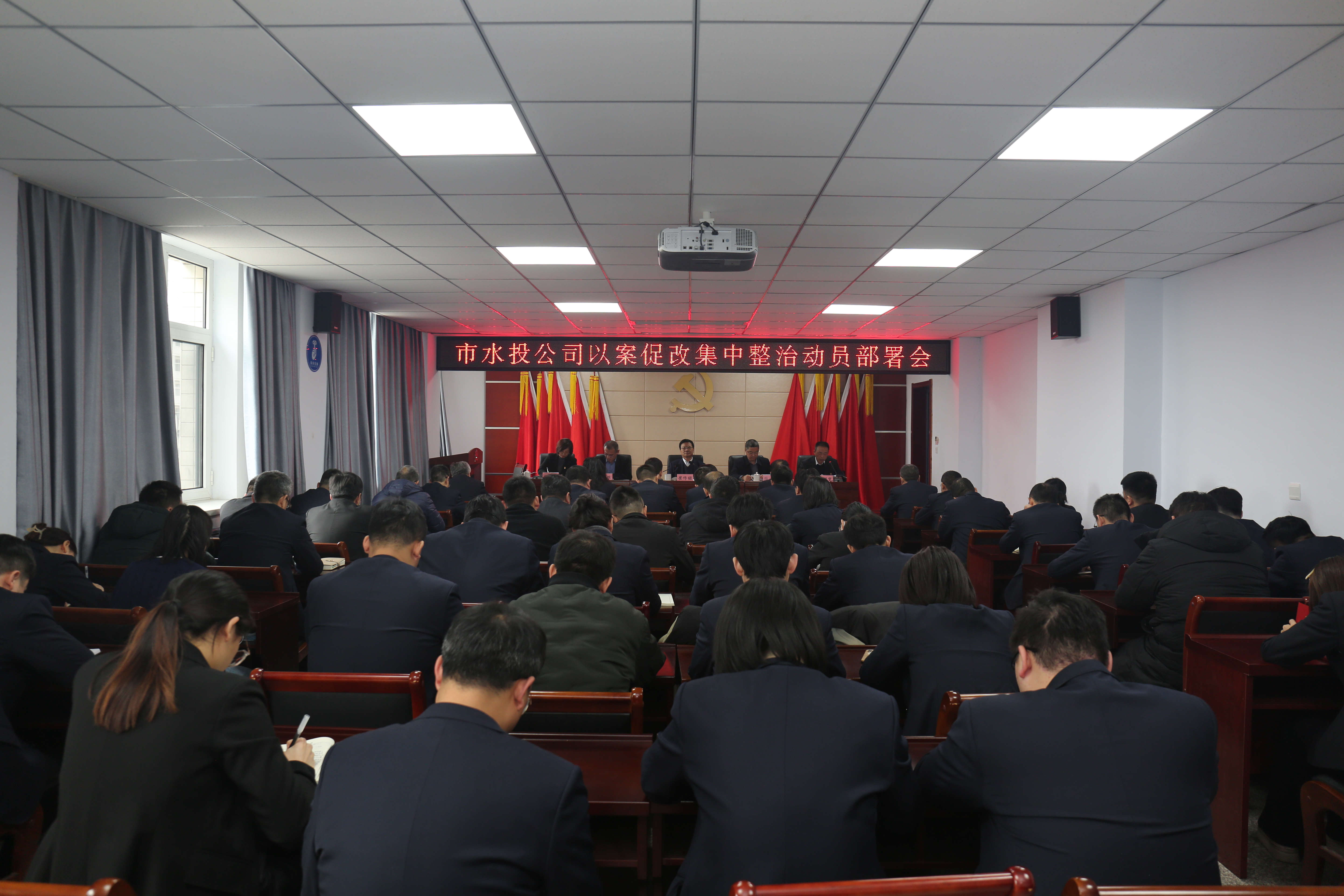 2月22日下午,市水投公司召開以案促改集中整治動員部署會議,公司機關全體人員及各子公司班子成員參加會議,黨委副書記、總經理薛文兵主持會議。